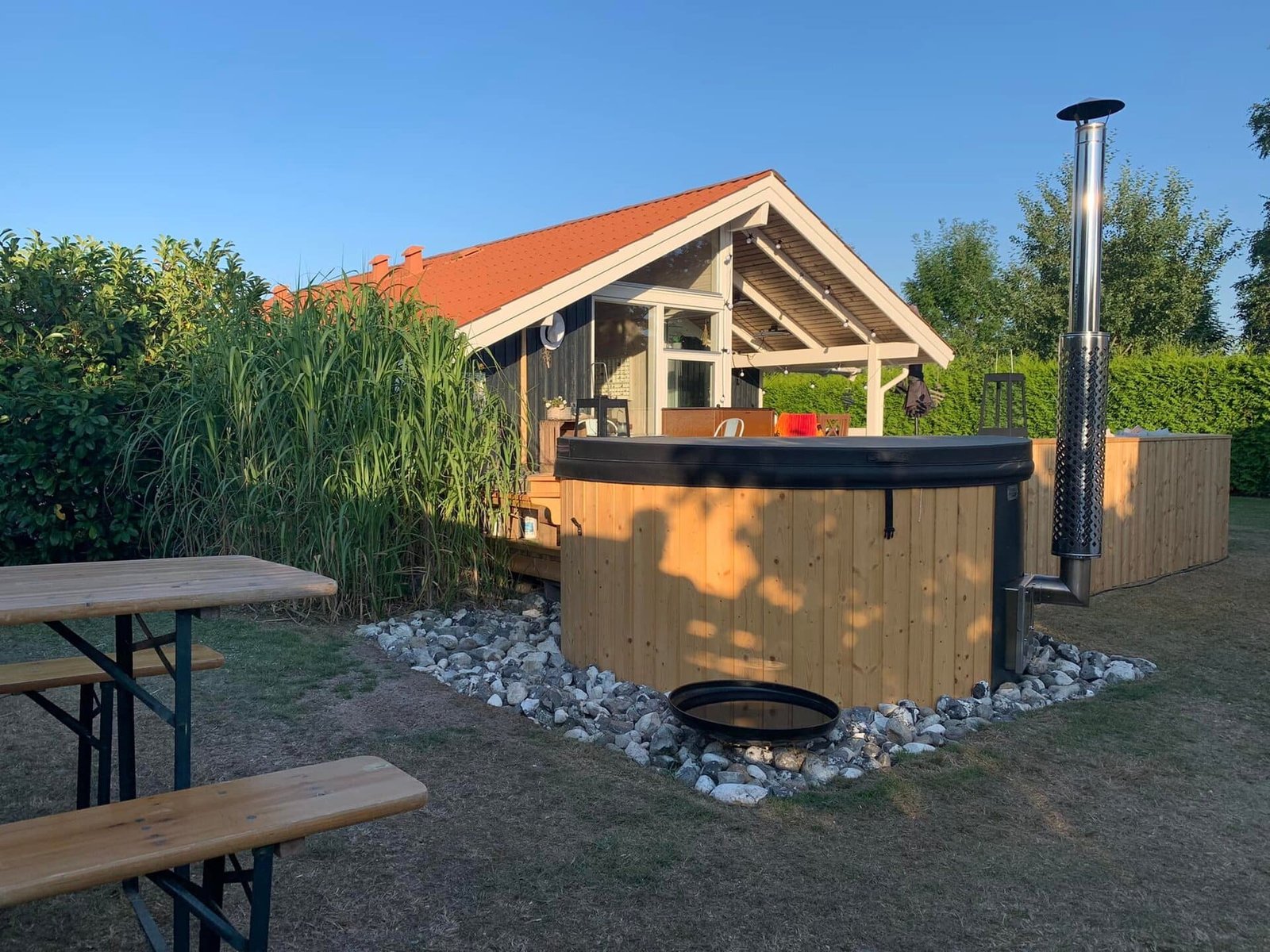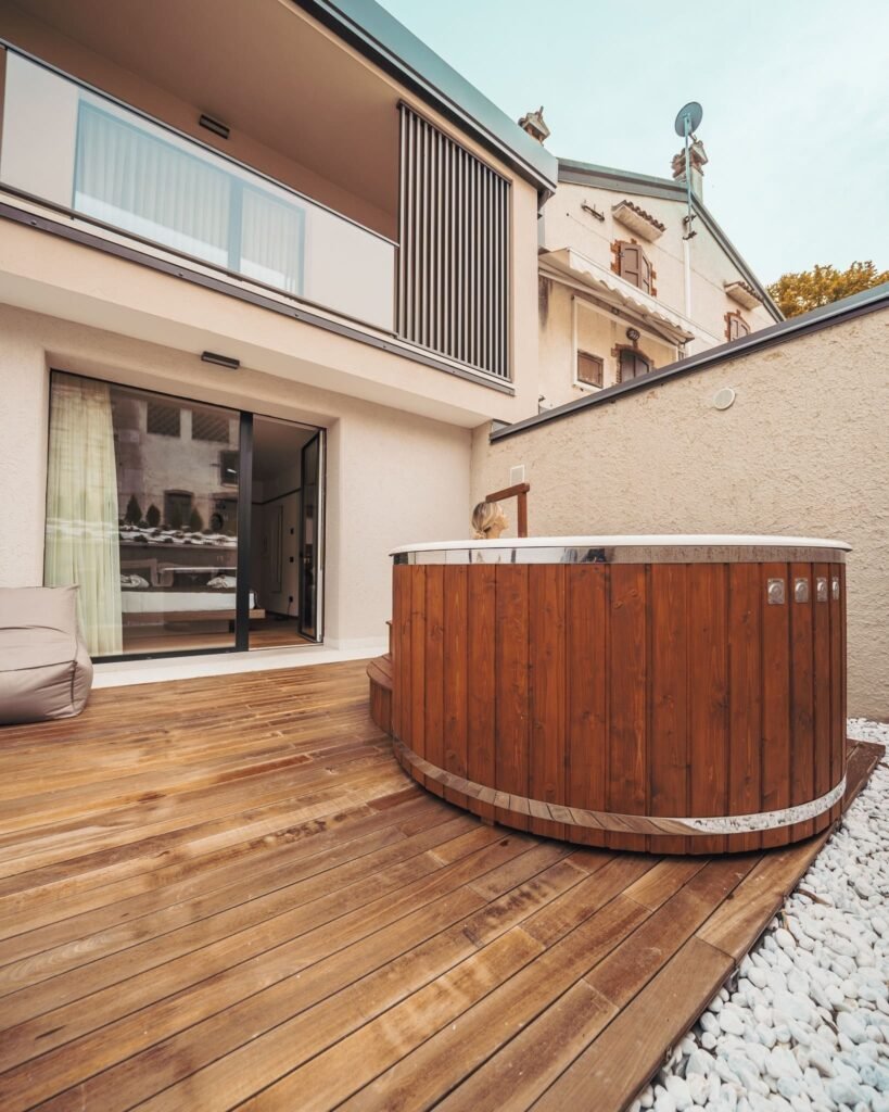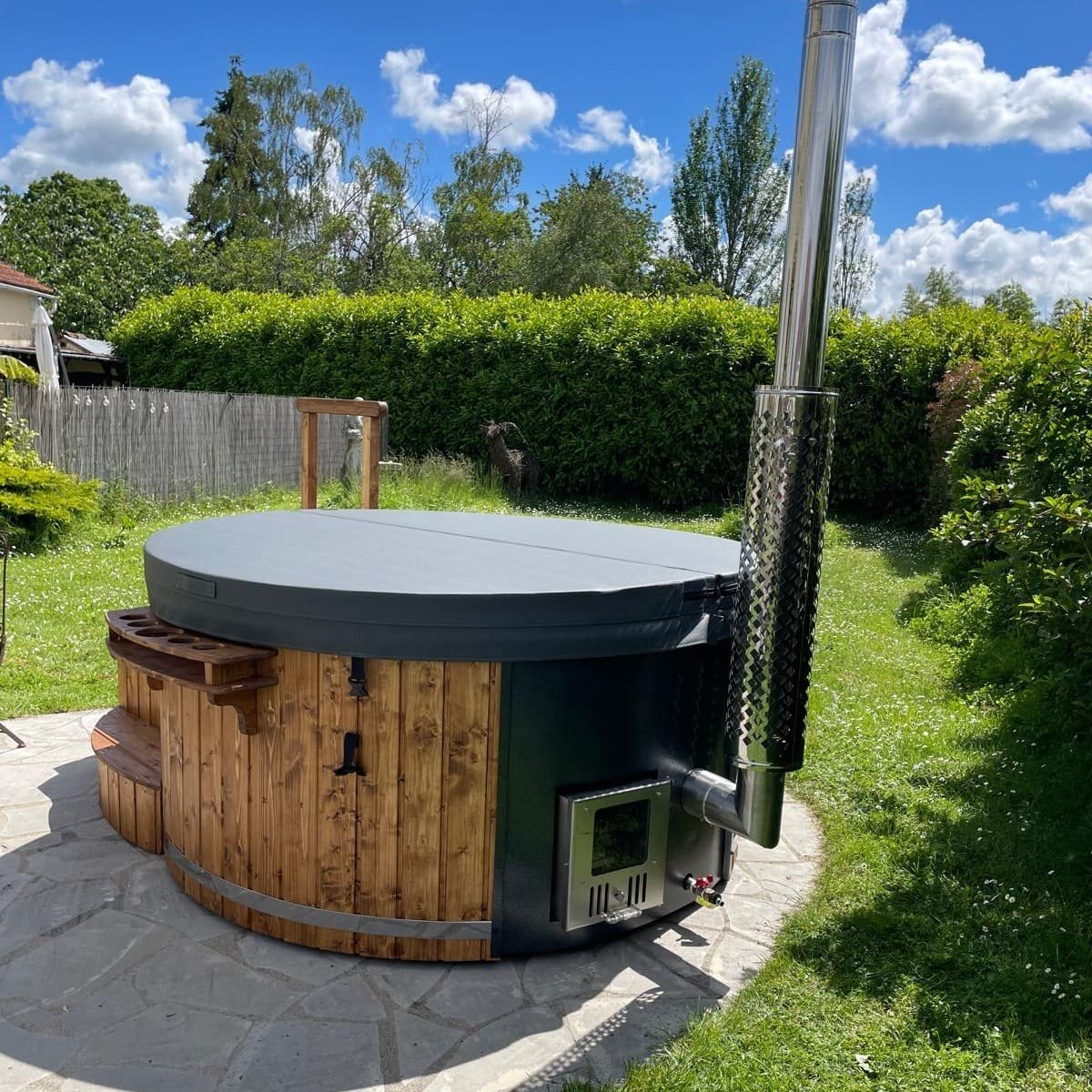 Die HOTTUB-200 und HOTTUB-225 Extern kombinieren traditionelle Holzofen-Wärme mit modernem HotTub-Design. Ideal für Garten, Terrasse oder Ferienimmobilien, bieten beide Modelle Platz für 4–6 Personen und sorgen mit ergonomischen Sitzflächen und effizienter Wärmeverteilung für ein entspannendes Wellness-Erlebnis. Der externe Edelstahl-Außenofen sorgt für authentisches Saunafeeling und unkomplizierte Handhabung, während die isolierte Thermoabdeckung Wärmeverluste minimiert.